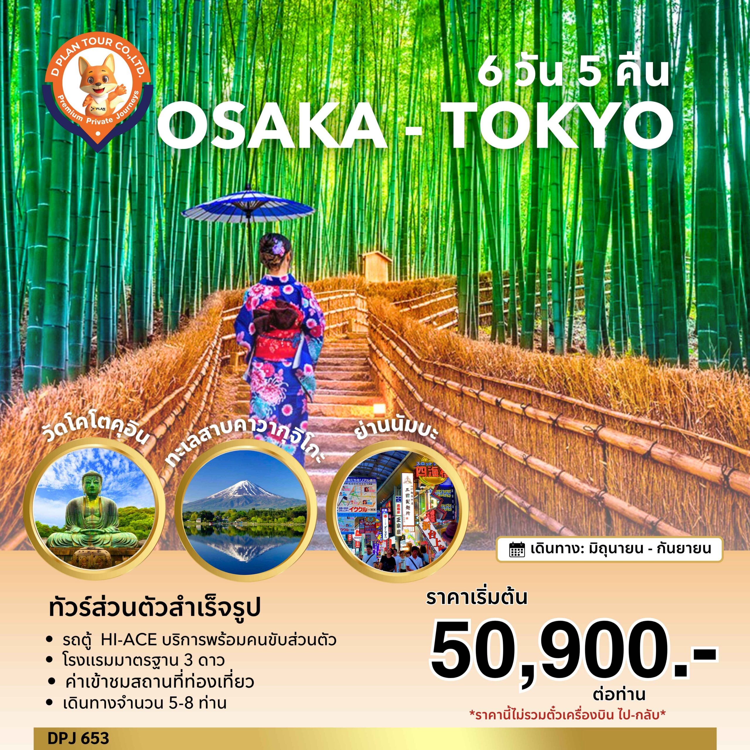 DPJ653-โปรเเกรมสำเร็จรูปโอซาก้า โตเกียว ฟูจิ 6วัน5คืน